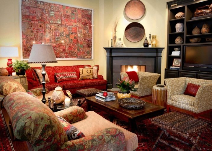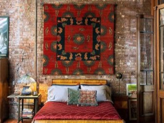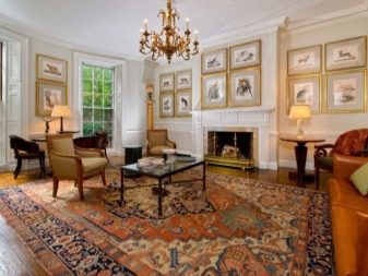 في غرفة المعيشة ، ستبدو السجادة المشرقة المصنوعة من مواد طبيعية رائعة على الحائط. لكن هذا العنصر يناسب تصميم الغرفة الكلاسيكية أو الشرقية فقط. في غرفة فسيحة ، يمكنك وضع أو تعليق ملحق من أي لون أو ظل. لكن ألوان الباستيل فقط مناسبة لمكتب صغير أو غرفة نوم..