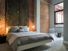 سوف ينجذب أسلوب لوفت نحو خيارات أحادية اللون في الظلال الداكنة. النماذج السوداء ، والرمادية ، والتراكوتا ، والأخضر الداكن هي الحلول المناسبة لهذا النمط من الفضاء. هنا يمكنك استخدام أغطية النسيج والجلود ، والتي ستؤكد بشكل إيجابي على التحضر في الغرفة..
