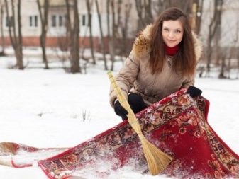 إذا كان من الضروري التخلص من الغبار الراكد من السجادة ، فأنت بحاجة إلى تخزين قطعة تكسير ناعمة خاصة بدون عناصر حادة حتى لا تتلف الوبر. يجب تنفيذ الإجراء نفسه عن طريق فرد السجادة على سطح أملس ومستوٍ ، ولا يتم تنفيذ الضرب إلا من الجانب السيئ..