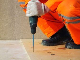 - ضع الخشب الرقائقي في الأعلى, تنشر الأوراق إلى أربعة أجزاء. يفعلون ذلك لأن الصفيحة الصلبة عرضة لتشوه أكبر بسبب تغيرات درجة الحرارة. للأسباب نفسها ، تُترك مسافة تصل إلى سنتيمتر واحد بين الجدار والخشب الرقائقي ، وثلاثة إلى أربعة ملليمترات بين القطع نفسها. أولاً ، يتم حفر الخشب الرقائقي بحفر 2-3 مم.