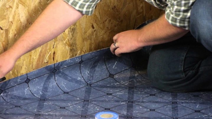 - يتم تنفيذ جميع الأعمال في غرفة بدرجة حرارة هواء لا تقل عن 18 درجة ورطوبة لا تزيد عن 50-80٪. بعد ذلك ، يقومون بإزالة القمامة بعناية ، وإحضار المشمع ، وفتحه حول المحيط وإعطائه الوقت للاستلقاء.