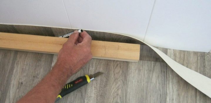 - باستخدام سكين حاد ، يقومون بقص الحواف على طول الجدران ، نظرًا لاحتمال حدوث انكماش في بعض أنواع المشمع. تتم عملية تشذيب إطارات الأبواب بعناية فائقة ، حيث لا يتم تغطية الحواف بأي شيء. يتم قطع الثقوب الفنية لتجاوز الأنابيب أو غيرها من العوائق.