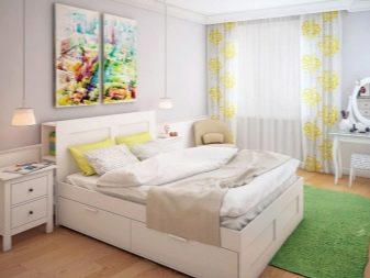 - ولكن إذا كانت غرفة النوم مُجهزة بالفعل بألوان هادئة ، حيث يسود اللون الأبيض أو ظلال باستيل أخرى ، فيمكنك ترتيب سجادة بجانب السرير بألوان زاهية ، على سبيل المثال ، أحمر أو وردي. سيصبح مثل هذا المنتج تسليط الضوء الحقيقي على الغرفة..