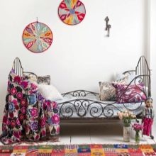 بالنسبة لغرفة النوم ذات الطراز العرقي ، فإن السجاد على شكل جلد حيوان صلب أو مصنوع من قطع باستخدام تقنية الترقيع مناسبة. السجاد المصنوع على شكل جلود حمار وحشي يحظى بشعبية كبيرة بين المصممين. تتناسب هذه المنتجات الأصلية تمامًا مع أي تصميم داخلي ، لكنها ستبدو أفضل في غرفة يهيمن عليها اللونان الأسود والأبيض..