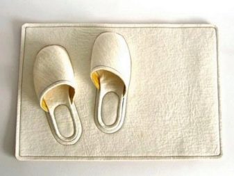 - مع النعال المنزل – هذا النموذج غير العادي سوف يروق لأولئك الذين يحبون كل شيء أصلي. في المظهر ، لا يختلف هذا المنتج عمليًا عن السجادة العادية الموجودة بجانب السرير. لكن بها ثقوب خاصة للنعال. صُنع النعال من نفس خامة السجادة لتندمج معها. ولكن ، عند الاستيقاظ في الصباح والنهوض من السرير ، ستضع قدمك بالتأكيد في النعال. هذه السمة لن تزين الغرفة فحسب ، بل تفاجئ ضيوفك أيضًا..