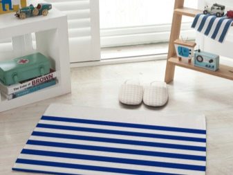 - بالنسبة لغرفة الأطفال ، يمكنك التقاط سجادة معقدة بجانب السرير تشبه الآلة الكاتبة أو الخطوط العريضة لحيوان ، على سبيل المثال ، تمساح أو حمل أو جنية.