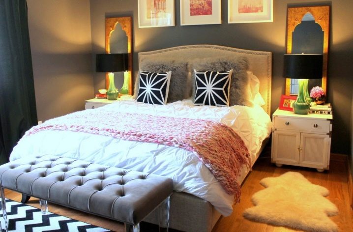 يجب اختيار شكل بساط السرير وفقًا للطراز المختار لتزيين غرفة النوم: