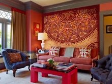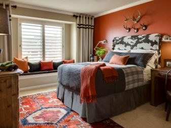انتبه إلى مكان وضع السجادة بجانب السرير – على الحائط أو على السقف. إذا كنت تستخدم سمة حائط لغرفة النوم ، فأنت بحاجة إلى التفكير في تصميم الجدران. من المهم أيضًا أن يتم دمج هذا الملحق مع سرير وستائر ، وإلا فإنه سيركز على نفسه كثيرًا من الاهتمام..
