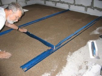 - نضع أقسام الملف الشخصي ، كما في حالة ذراع التسوية الرطب. نملأ كل شيء بعزل الهيكل الفضفاض لتسوية السطح.