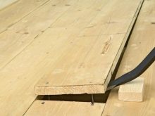 - نجلس على لوح الأرضية ، ونتيجة لذلك ، سيتم وضعه في مكانه ، وسوف يبرز الظفر.