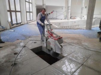 - قطع الماس. يمكن استخدام هذه الطريقة إذا كان سمك الخرسانة لا يزيد عن 25 سم ولا تحتوي على تسليح. عادة ما يؤديها شخصان ، حيث يكاد يكون من المستحيل التعامل مع مثل هذا الشخص الحاد بمفرده. مظهر الجهاز الخاص غير معقد – إنه نوع من الآلية مع قرص يقطع السطح ، علاوة على ذلك ، فهو كبير الحجم ، وهو مناسب للغرف الصغيرة.