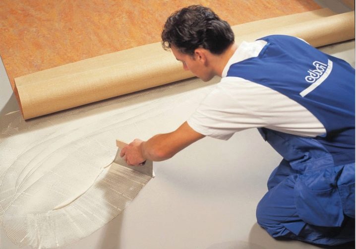 مشمع ، الذي ليس له دعم ، لا يمكن أن يلتصق بالأسطح الخرسانية والخرسانية. قبل تنفيذ مثل هذه الإجراءات ، من الضروري تغطية الأرضية بالخشب الرقائقي أو اللوح أو أي مواد أخرى متشابهة في التركيب..