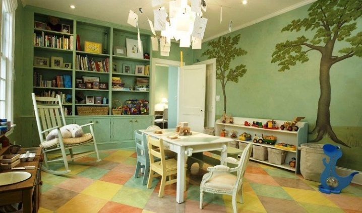 بمساعدة مشمع مشرق ومتباين ، يمكنك إنشاء مثل هذا التصميم الداخلي الفريد والملون. يبدو أن الجو السائد في الغرفة يأخذك إلى عالم سحري بعيد لأبطال القصص الخيالية ، الذين لا يحبهم الطفل فحسب ، بل والديه أيضًا. بالإضافة إلى ذلك ، تعمل المؤامرة القطرية على توسيع الغرفة بصريًا ، مما يجعلها أكبر وأكثر اتساعًا. هنا ، لم يتم اختيار النسيج الصحيح فحسب ، بل لوحظ أيضًا توازن كامل..