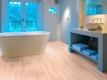 - مقاومة للرطوبة. بفضل هذه الخاصية ، يمكن وضع مشمع بأمان في الحمام والمطبخ. بعد كل شيء ، في مثل هذه الغرف هي أكثر الرطوبة والتلوث. أيضًا ، يمكن غسل غطاء الأرضية باستخدام كمية كبيرة من الماء ، دون المساس بخصائص جودة المادة. علاوة على ذلك ، حتى لو غمرت المياه الشقة ، فلن يعاني طلاء المشمع ، ولن تضطر إلى تغييره..