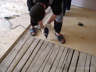 بعد اقتناعك أخيرًا بموثوقية الأرضية الخشبية وإعداد السطح ، يجب الحرص على أن يصبح السطح أكثر سلاسة. للقيام بذلك ، تحتاج إلى وضع ألواح من اللوح الليفي أو الخشب الرقائقي أعلى الألواح..