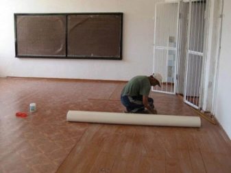 لذلك اكتمل تحضير السطح. حان الوقت الآن لبدء تحضير المشمع. قبل البدء في تركيب المشمع ، من الأفضل أولاً نشر المواد على الأرض. يعد ذلك ضروريًا حتى يستقيم المشمع بعد التخزين ويتحمل درجة حرارة الغرفة. بدون مثل هذا الإجراء ، يجب ألا تبدأ في التصميم لتجنب العيوب غير المرغوب فيها..