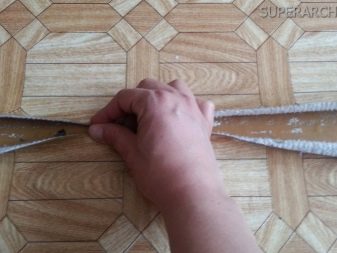 يجب أن نتذكر أيضًا أنه بدون الخشب الرقائقي أو اللوح الليفي ، الذي سبق وضعه على أرضية خشبية ، ينتشر المشمع بشكل غير متساو..
