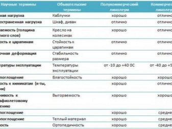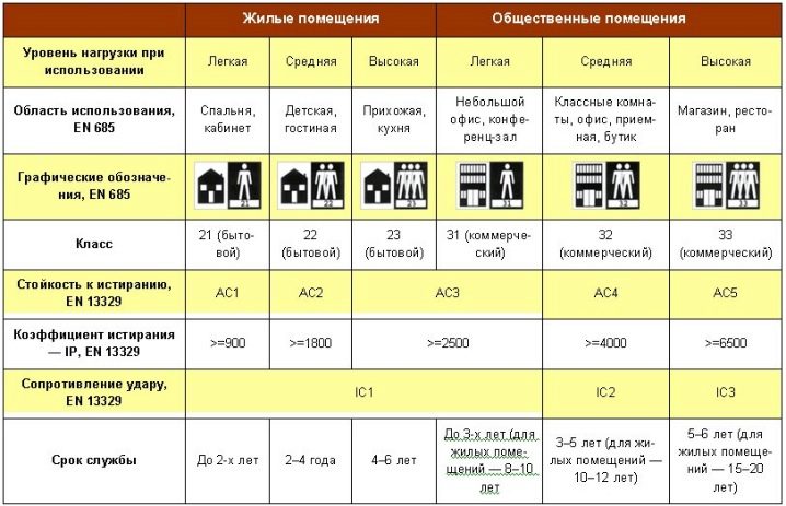 وفقًا لـ GOST 7251-77 ، يتم تقسيم جميع أنواع المشمع التي تحاكي نمط الألواح الخشبية إلى عدة فئات وفقًا لخصائصها:
