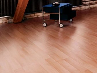 تكمن الميزة الرئيسية الثانية في حقيقة أن وضع المشمع أسهل من اللامينيت. للقيام بذلك ، تحتاج إلى استخدام غراء خاص. تستغرق عملية التمديد نفسها وقتًا أقل من وضع الألواح الخشبية باستخدام أقفال خاصة..