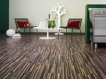 هناك اختلاف رئيسي واحد بين مشمع مع مثل هذا التقليد من أنواعه الأخرى. انها تكمن في التصميم الصحيح. يتم وضع الأرضيات المقلدة للألواح الخشبية على شكل قطع وليس من قطعة واحدة. هذا التثبيت هو الذي يسمح لك بمحاكاة غطاء الأرضية بشكل صحيح وجميل..