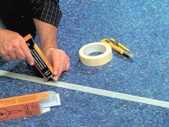 قبل شراء المادة ، يتم قياس مساحة الشقة ويتم احتساب لقطات لفة المطلوبة من هذا الرقم. تبدأ المفاصل بالانضمام بعد الأرضيات. يمكنك إصلاح السجادة أو تحديد الانتقال بين الغرف ذات البوابات..