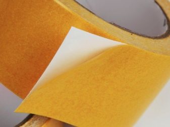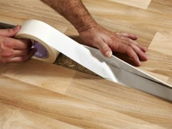 الطريقة الأسهل ولكنها غير موثوقة. هذا لأنه لا يوجد ، حتى أفضل شريط لاصق ، مصمم لتحميل طويل الأمد وبمرور الوقت تضعف قدرته اللاصقة. من أجل لصقها ، فقط الأرضية المسطحة بدون نتوءات مناسبة. بناءً على ذلك ، من الأفضل تجهيز السطح بالكامل قبل العمل بتربة تقوية خاصة..