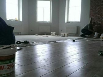 يجب تسوية الأرضية السفلية دون فشل ؛ يُسمح بالاختلافات التي تبلغ حوالي 2 مم فقط. من الأفضل استخدام الطين الخرساني ، فهو لا يمنح السطح مظهرًا مستويًا فحسب ، بل يمنح أيضًا العزل الحراري وامتصاص الصوت. يتم تنفيذ جميع الإجراءات الأخرى فقط بعد التجفيف بنسبة مائة بالمائة.