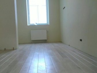 إذا كانت الأرضية الخرسانية في الغرفة غير مستوية ، فمن المستحسن “لمسها” قليلاً. من الصحيح ، من وجهة نظر القائمين بالتركيب ، استخدام طبقة إضافية من ذراع التسوية. كمية صغيرة من الحل كافية لتصحيح هذا العيب فقط. تبدأ المرحلة التالية بعد أن تجف تمامًا..