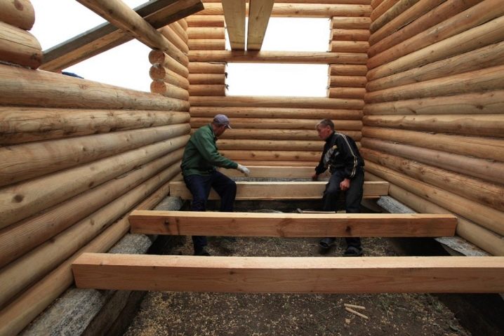 إذا كان المنزل خشبيًا ، فيمكن تثبيت الأرضية السفلية على طول العوارض الحاملة. في هذه الحالة ، ستلعب الحزم دور التأخر ، مما يعني أنه بفضل هذا يمكنك التوفير بشكل كبير. لكن تذكر أن صيجب أن تكون المسافة بين الحزم صغيرة, وإلا فسيتعين عليك “بناء” قاعدة إضافية من التأخر.