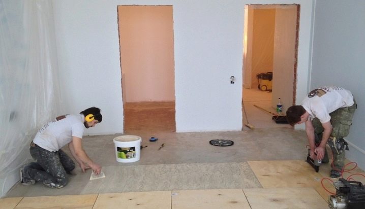 طبقة الأساس من الخشب الرقائقي مطلوبة فقط عند تسوية القاعدة. إذا لم تكن هناك حاجة ، فلن تكون هناك حاجة إلى الركيزة أيضًا..