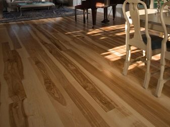 يجب تركيب الأرضية بطريقة عائمة. مع طريقة التمديد هذه ، لا تتشوه الشجرة تحت تأثير الرطوبة وعندما تتغير درجة الحرارة. يلعب نظام التدفئة الأرضية أيضًا دورًا مهمًا. تذكر أن الخشب شديد الاشتعال ، مما يعني وجود خطر نشوب حريق.