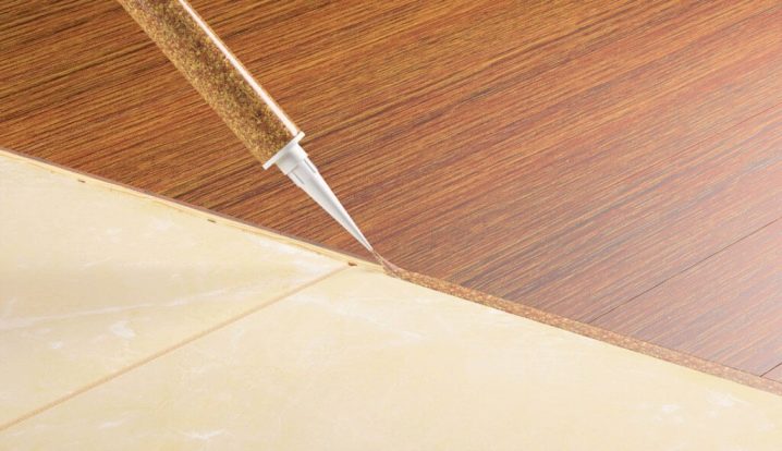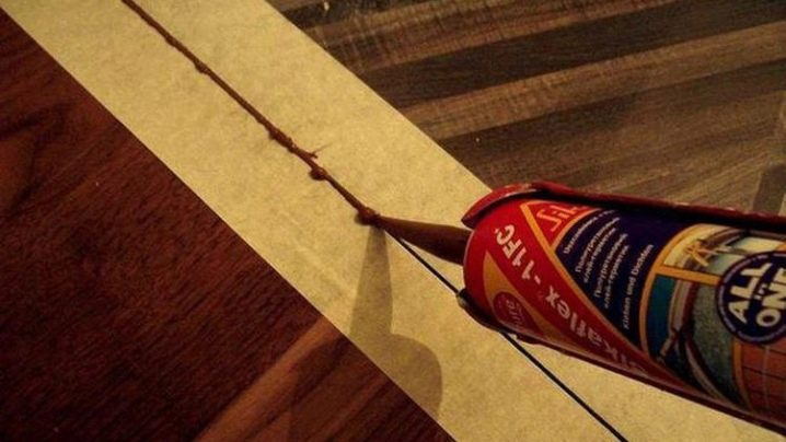 إذا خرج الغراء من الحواف ، فيجب إزالته. بعد تثبيت الأرضية ، يتم ختم جميع اللحامات بمادة مانعة للتسرب. يتم الانتهاء من الباركيه بعد الانتظار خمسة أيام.