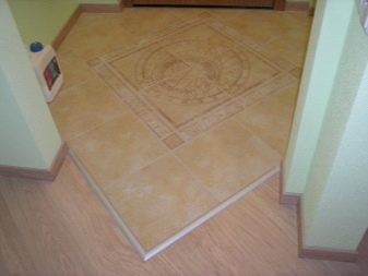 لسوء الحظ ، فإن لوح الباركيه لا يتحمل الرطوبة ، وفي بعض الغرف من الضروري الانتقال بين اللوح والبلاط أو مع مواد البناء الأخرى. في أغلب الأحيان ، يتم استخدام الإرساء في الممر – أمام الباب الأمامي ، بين الممر والمطبخ ، بين الحمام والممر.