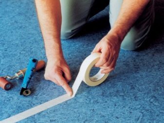 - يمكنك قص المشمع مباشرة في المتجر ، فمن المستحسن أن تكون قطعة صلبة ، حتى لا تضطر إلى إضاعة الوقت في الانضمام إلى اللحامات. حاليًا ، تنتج الصناعة لفات يصل عرضها إلى 5 أمتار ، وهو ما يكفي لمساحة الغالبية العظمى من الشقق. إذا كان لا يزال من المستحيل الاستغناء عن اللحامات ، فيجب تقليل عدد المفاصل إلى الحد الأدنى..