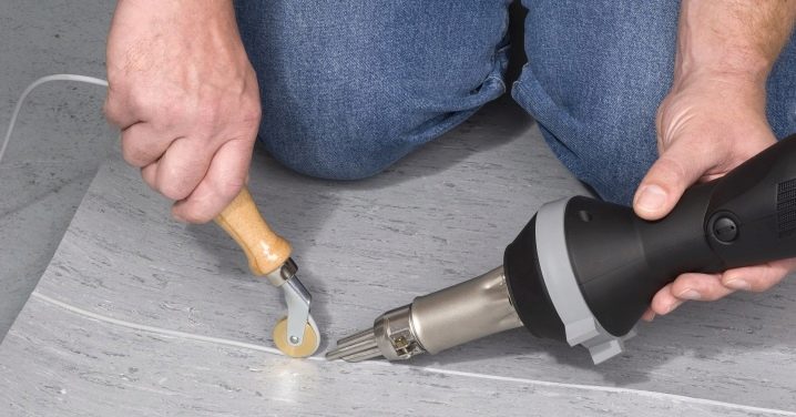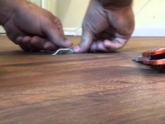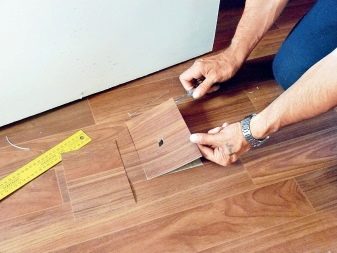 إذا كان من الصعب ملاءمة الحواف ، نظرًا لأن الأرضية تتداخل لسبب أو لآخر ، فيجب قطع المكان الذي يتم فيه دمج القطع ، وبعد إزالة القصاصات ، سيتم الحصول على مفصل مثالي. ومع ذلك ، يجب ألا يغيب عن البال أن طريقة الانضمام هذه ممكنة فقط عند تثبيت طلاء أحادي اللون.