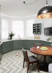 ميزة مشمع الأبيض هو أنه ، مكتمل مع الألواح المتناقضة ، فإنه يضيف هندسة إلى الفضاء. تتطابق الأرضية البيضاء اللبنية مع الأثاث البني الغامق لخلق تصميم داخلي بدرجات لون القهوة مع الكريم. مشمع البيج مع تقليد صفح هو زخرفة جيدة للغرف بألوان الباستيل. يمكن أن يبدو أي أثاث رائعًا على خلفية مشمع خفيف..