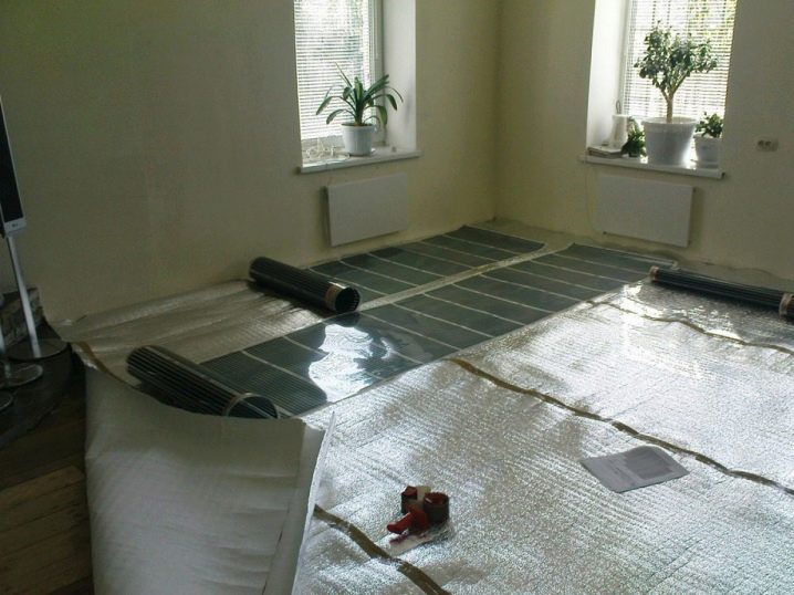 كما ذكرنا سابقًا ، يتكون نظام التدفئة تحت الأرضية الكهربائي من عدة طبقات ، لكل منها وظيفة مهمة. أولاً ، يتم وضع عازل للحرارة. اعتمادًا على الأرضية التي توجد عليها الغرفة ، يمكنك اختيار عازل حراري بالسماكة المناسبة.