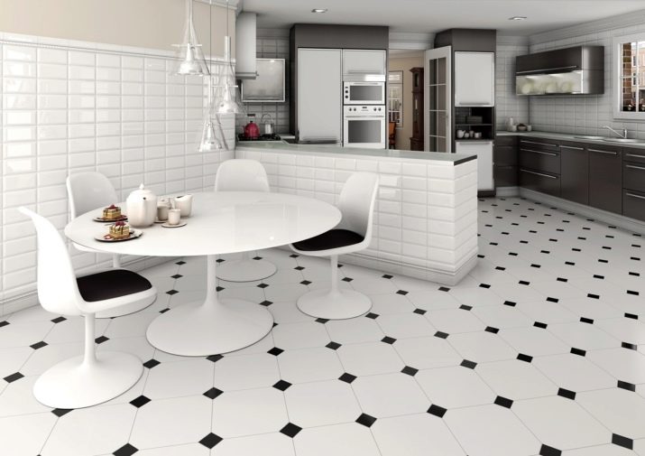 تحتوي بعض أنواع البلاط على أنماط معقدة للغاية تسمح لك بتكوين تركيبات من خطوط ناعمة بألوان مختلفة على الأرضية. مثل هذا الطلاء سيجعل الغرفة مملة..
