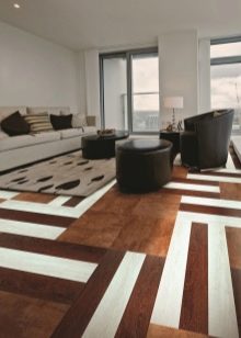 يفتح استخدام عناصر الفينيل الكثير من الإبداع عند تثبيت الأرضية ، لأنها لا تختلف في اللون والملمس فحسب ، بل إنها تقطع جيدًا أيضًا. لذلك ، ليس من الصعب على الإطلاق وضع أي رسومات تحت قدميك..