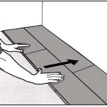 - بعد اللصق ، يجب ضغط البلاط بقوة على القاعدة ، أو لفه بأسطوانة أو إلصاقه بالكامل بالأرضية بمطرقة مطاطية.