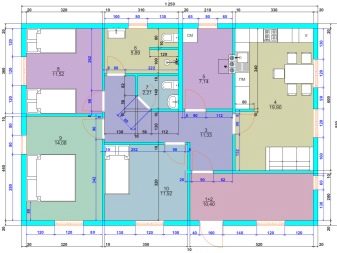 في المجموع ، تم طرح 100 متر مربع مفيد من 150 متر مربع حقيقي. مع الأخذ في الاعتبار الجدران والفواصل ، فإن المساحة الإجمالية الصالحة للاستخدام ستكون 135-140 متر مربع. 35-40 المتبقية تكفي لمرآب به ورشة عمل.