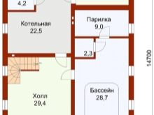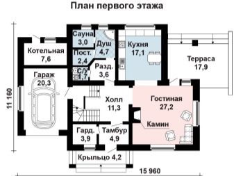 1st الكلمة – مرآب لـ 20.3 ، غرفة المرجل – 7.6 ، ساونا – 3 ، غرفة الاستحمام – 4.7 ، غرفة المغسلة – 2.4 ، المرحاض – 1.7 ، مدخل الحمام – 3.6 ، القاعة – 11 ، 3 ، المطبخ – 17.1 ، غرفة الملابس – 3.9 ، الدهليز – 4.9 ، غرفة المعيشة مع مدفأة – 27.2 ، الشرفة – 4.2 متر مربع.