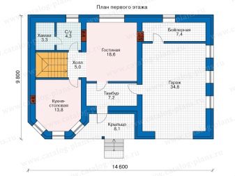 الأكواخ المكونة من طابقين مع المرآب ، وكذلك المشاريع التي يتم فيها تعيين دور الطابق الثاني في العلية ، منتشرة على نطاق واسع ، ومعظم القيود المتأصلة في المنازل المكونة من طابق واحد غائبة. القاعدة غير مطلوبة في معظم الحالات. مخطط المنزل في هذه الحالة على النحو التالي..