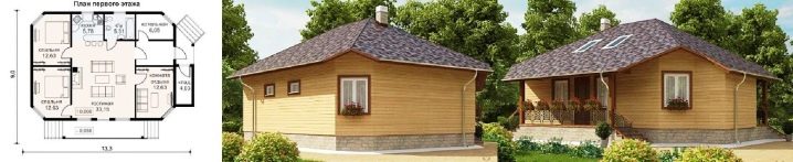 ستبدو المنازل المكونة من طابق واحد المصنوعة من عوارض خشبية جميلة وأنيقة. غالبًا ما تشتمل على غرفة معيشة واسعة (مساحة 25-30 مترًا مربعًا) وغرفتي نوم من نفس الحجم ومطبخًا كبيرًا أو مطبخًا وغرفة لتناول الطعام وحمامًا.