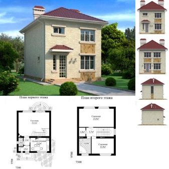 هناك طلب كبير على مثل هذه الهياكل المكونة من طابقين المبنية من الطوب.. غالبًا ما يتم اختيار الطوب البني المزخرف لإنشائها. في كثير من الأحيان ، يتم تشطيب بعض هذه المنازل بشكل إضافي من الخارج بالحجر الطبيعي أو الاصطناعي. يمكن أن يكون السقف بنفس لون الجزء الرئيسي.