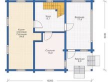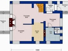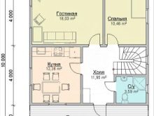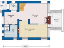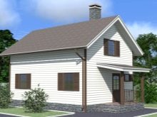 مبنى سكني بمساحة 10 × 8 أمتار مع علية مريح بما يكفي لعائلة متوسطة مكونة من 4-5 أشخاص. في أغلب الأحيان ، توجد المناطق المشتركة والحمام وغرف المرافق في الطابق الأرضي. في العلية ، تم تجهيز غرف الأطفال والنوم وحمام ثان. من خلال التصميم المناسب ، يمكنك بسهولة تخصيص مساحة لغرف تبديل الملابس أو غرفة للتطريز.