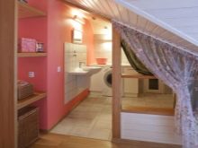 هناك خيار تم فيه تجهيز منزل من طابقين بعلية ، أي أنه يتم الحصول على ما يقرب من ثلاثة طوابق. في هذه الحالة يمكنك تجهيز الحمام في كل غرفة نوم وزيادة عدد غرف النوم نفسها..
