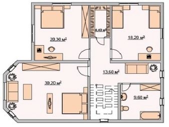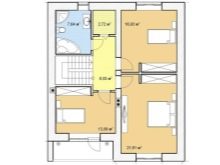 يحتوي المنزل الذي يبلغ ارتفاعه طابقين مع أقصى مساحة قابلة للاستخدام بالضرورة على علية. قد يبدو رسم مسكن حديث من هذا النوع كما هو موضح أدناه.. الميزة الجذابة هي عدم وجود غرف صغيرة – كل ركن من أركان المنزل مزين بشكل صحيح. تبلغ مساحة منطقة الضيوف 20.2 مترًا مربعًا. م هناك كل ما تحتاجه للحياة.
