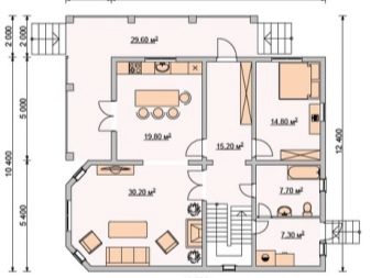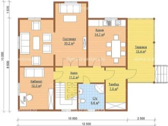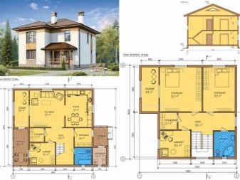 يحتوي المنزل الذي يبلغ ارتفاعه طابقين مع أقصى مساحة قابلة للاستخدام بالضرورة على علية. قد يبدو رسم مسكن حديث من هذا النوع كما هو موضح أدناه.. الميزة الجذابة هي عدم وجود غرف صغيرة – كل ركن من أركان المنزل مزين بشكل صحيح. تبلغ مساحة منطقة الضيوف 20.2 مترًا مربعًا. م هناك كل ما تحتاجه للحياة.