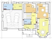 يمكنك أيضًا بناء منزل به مرآب من الخرسانة الخلوية. تبلغ مساحة غرفة المعيشة في الطابق الأول 27.4 مترًا مربعًا. م ، حتى أنه يحتوي على مدفأة. تبلغ مساحة مواقف السيارات 18.8 مترًا مربعًا. م حتى الحمام المتواضع منظم على هذا المستوى. غرفتا نوم و 4 غرف مخصصة ، ونوافذ بانورامية وإضاءة مزدوجة ستسعد الناس بالتأكيد.